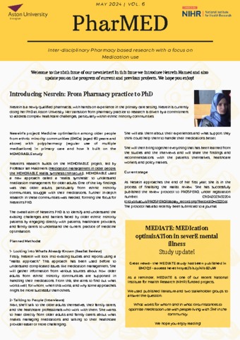 Habib, Hafsah, Hamed, Nesrein, Birdi, Gurkiran, Howe, Jo and Maidment, Ian (2024). PharMed newsletter Volume 6. Project Report. Aston University.