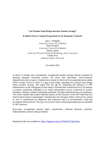Fernandez, Juan J., Gonzales, Sara, James, Hayley and Wiß, Tobias (2024). Can pension fund design increase pension savings? Evidence from a conjoint experiment in six European countries. Work, Aging and Retirement ,