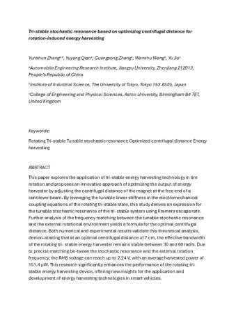 Zhang, Yunshun, Qian, Yuyang, Zhang, Guangsong, Wang, Wanshu and Jia, Yu (2025). Tri-stable stochastic resonance based on optimizing centrifugal distance for rotation-induced energy harvesting. Mechanical Systems and Signal Processing, 224 ,